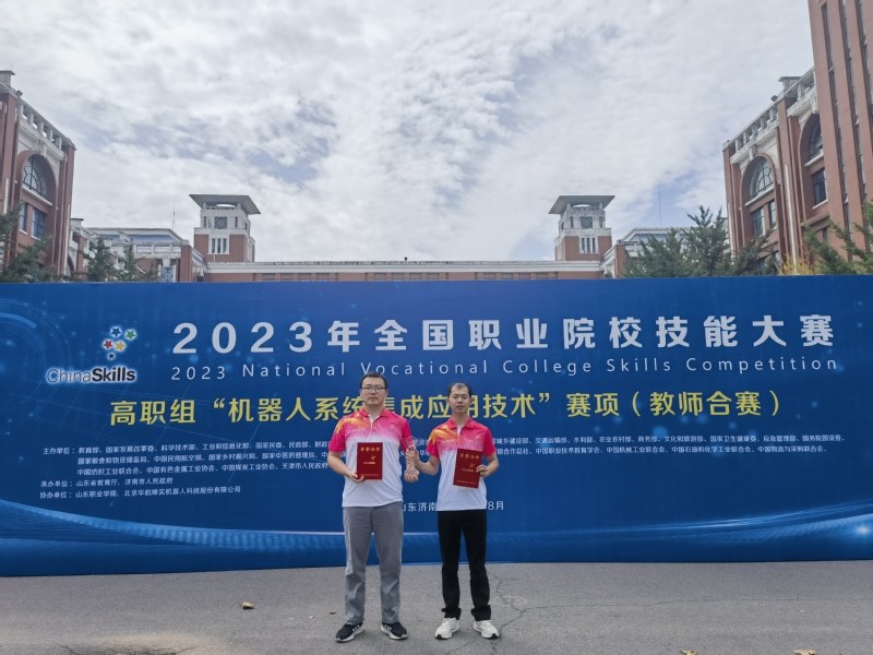 “机器人系统集成应用技术”教师赛是教育部今年新设赛项。职业教育教师参加技能大赛有利于提高专业水平和实践能力,促进职业教育师资队伍的更新和提升。获奖教师陈伟、江海天曾是本校学生,也是技能大赛金牌选手,后留校任教,成为实践教学指导教师。两位老师在学生阶段,经过专业社团、工程师训练营等技能训练平台锻炼,以选手身份获得过职业院校技能大赛全国一等奖3项、二等奖1项、省赛和行业赛一等奖10余项,是名副其实的金牌选手。2019年留校任教,他们在教学和竞赛方面刻苦钻研,指导学生参加技能大赛获得国赛一等奖4项、二等奖1项。本次,他们又以专业教师的身份参加全国职业院校技能大赛教师组的比赛并获得金牌,成为了名副其实的“金牌选手”“金牌教练”“金牌教师”三料冠军。