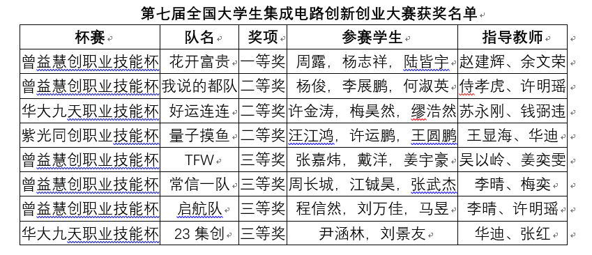 职业技能赛项的竞赛题目均来自于企业工程实践,全面考核学生从集成电路设计、封装到自动化测试等各个环节的创新实践能力。学校参赛队分别来自电子信息工程技术、工业互联网应用、电气自动化技术、集成电路技术四个专业、两个年级。在电子工程学院和智能装备学院教师的联合指导下,经过两个月的艰苦训练,通过初赛网评、决赛实战和现场答辩等环节,最终取得了优异的成绩。