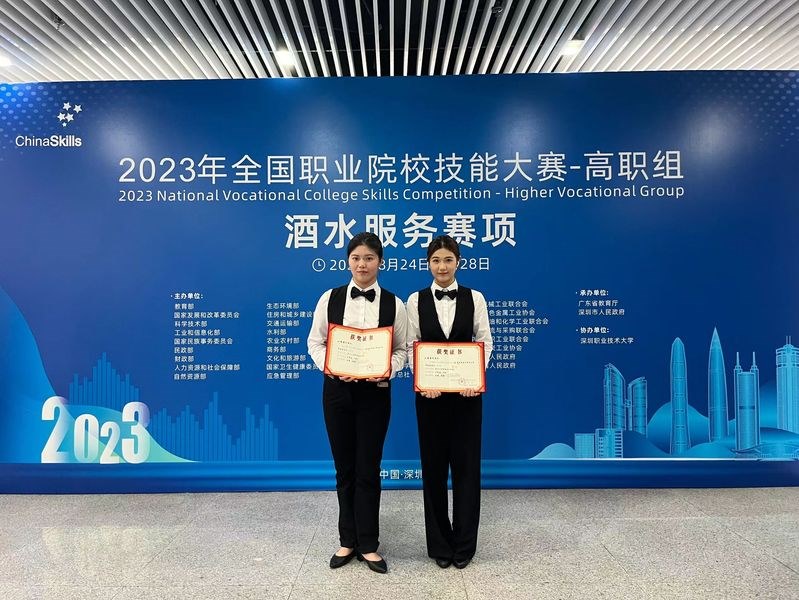 8月24-28日,全国职业院校技能大赛“酒水服务”赛项学生组在深圳职业技术大学开赛,来自全国各省、自治区、直辖市的60支代表队参赛。常州工业职业技术学院周丽、陈纯老师指导的顾娴和刘梦洁两位选手以优异成绩获得该赛项的二等奖,实现旅游与康养学院在全国职业院校技能大赛赛项的历史性突破。
