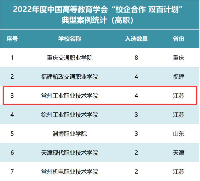 据悉,获认定的282项案例由高职院校申报的共61项,学校位居全省高职院校入选案例项目数量第一,全国第二。