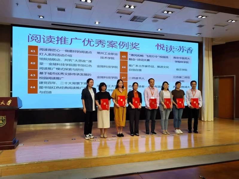 9月22日,“悦读·苏香”暨江苏省高校图书馆阅读推广精品案例交流会在南京大学仙林校区召开。会上,常州工业职业技术学院图书馆选送的“阅读育匠心——做最好的阅读点灯人系列活动介绍”获优秀案例奖。