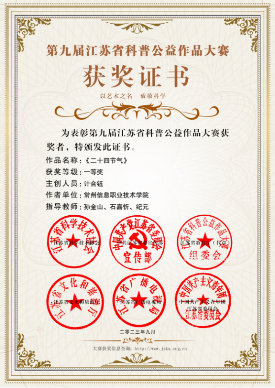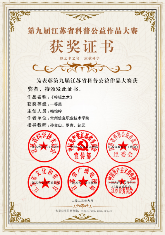 近日,由江苏省委宣传部、省科协、省教育厅、省文化和旅游厅、省广播电视局、团省委主办的第九届江苏省科普公益作品大赛获奖作品揭晓。常州信息职业技术学院从来自全国20余省市的8332件作品中脱颖而出,一举摘得一等奖三项,收获历史性突破。