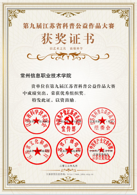 近日,由江苏省委宣传部、省科协、省教育厅、省文化和旅游厅、省广播电视局、团省委主办的第九届江苏省科普公益作品大赛获奖作品揭晓。常州信息职业技术学院从来自全国20余省市的8332件作品中脱颖而出,一举摘得一等奖三项,收获历史性突破。