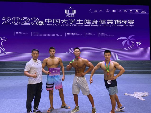 学校健身健美队由体育部张国猛老师带队,曾在2021年国赛中取得健体第二名,并获得优秀运动员、优秀教练员、体育道德风尚运动队等荣誉。高水平的健身健美比赛,是对每一个参赛选手身体、心理、意志、自律的极限挑战。在12周的备赛周期内,调整自己的力量训练、有氧练习、饮食计划、作息规律。尤其是赛前一周,断水断盐(零摄入)、冲水(赛前3天,每天8-9L蒸馏水,杜绝一切含钠食物)、充碳(赛前3天逐渐摄入大量糙米,大米或者土豆)、脱水(赛前48小时饮水量控制在500毫升),不断冲击身体极限,是对个人意志的极大考验。我校有3名参赛队员,其中2名是退役士兵(武警和陆军)。获奖运动员狄仁杰曾服役于陆军特种作战第73旅,多次参加陆军特种训练,在极限环境下完成任务,铸成强大的身体素质和钢铁般意志品质。他将此次学校备赛作为部队特训的延续,全身心投入到训练中,除学习、吃饭和睡觉外,还誓要为集体取得荣誉,尽显常机电精神。