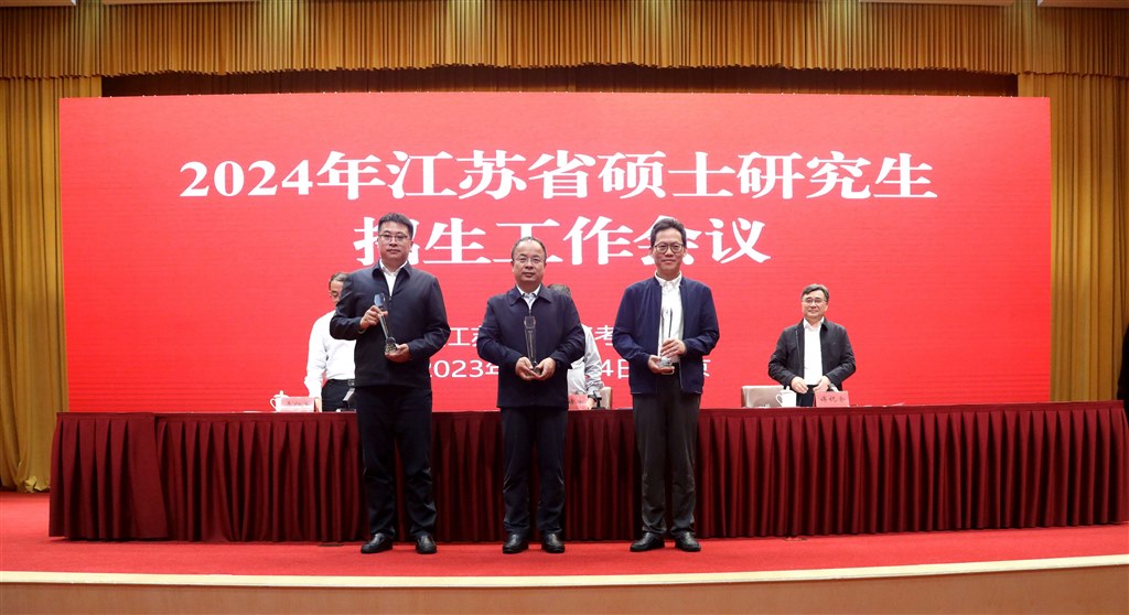 近日,我省召开2024年硕士研究生招生工作会议,全面部署2024年硕士研究生招生考试工作,并对2023年研究生招生工作进行总结表彰。会议表彰了2023年硕士研究生招生考试目标管理考核优秀单位。常州大学再次获评江苏省研究生招生管理工作“优秀招生单位”和“优秀报考点”,并首次获得高校报考点第三名,党委常委、副校长李亚飞上台领奖。