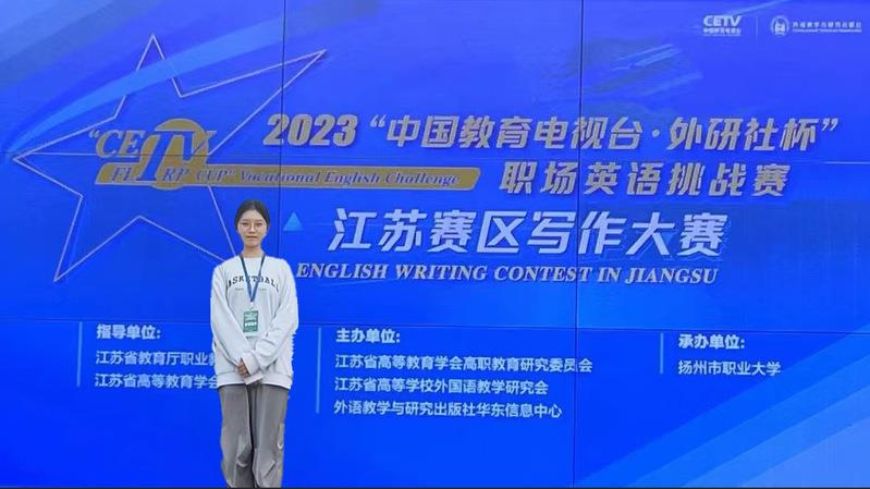 近日,2023年“中国教育电视台外研社杯”职场英语挑战赛江苏省省赛圆满落幕。在写作大赛中,常州纺织服装职业技术学院商英2331徐菲阳荣获特等奖,将代表江苏省参加12月份举行的全国总决赛,影视213B牟坤荣获三等奖。在演讲大赛中,商英223本陆杨逸荣获一等奖,幼服2332史妤婕荣获二等奖,物流2332袁钲皓荣获三等奖。