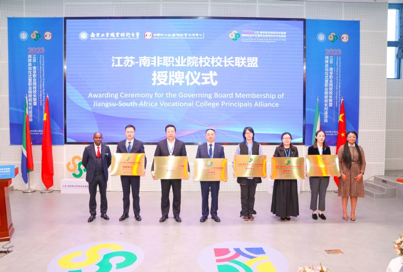 会上举行了“江苏-南非职业院校校长联盟”“中国-南非职业院校艺术设计交流中心”揭牌仪式、“江苏-南非职业院校校长联盟”理事成员单位授牌仪式以及“江苏-南非职业院校校长对话”等活动。学校当选为“江苏-南非职业院校校长联盟”首批理事单位。