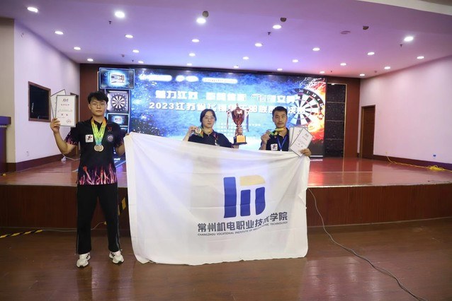 飞镖队在本学期报到当天,便投入严格的周期训练,每天保持4个小时高密度、大强度训练,并邀请职业镖手与学生线上对战,模拟比赛强度和考验战术运用能力,不断强化体能、心理和应对能力。10月中旬,飞镖队在由学校协办的2023江苏省飞镖俱乐部联赛常州分站赛中取得冠军,以种子身份直通总决赛。总决赛淘汰赛阶段,采用5局3胜混合赛制,多次上演从落后到逆转取胜的精彩场面,体现了坚忍不拔、勇于拼搏的常机电精神。