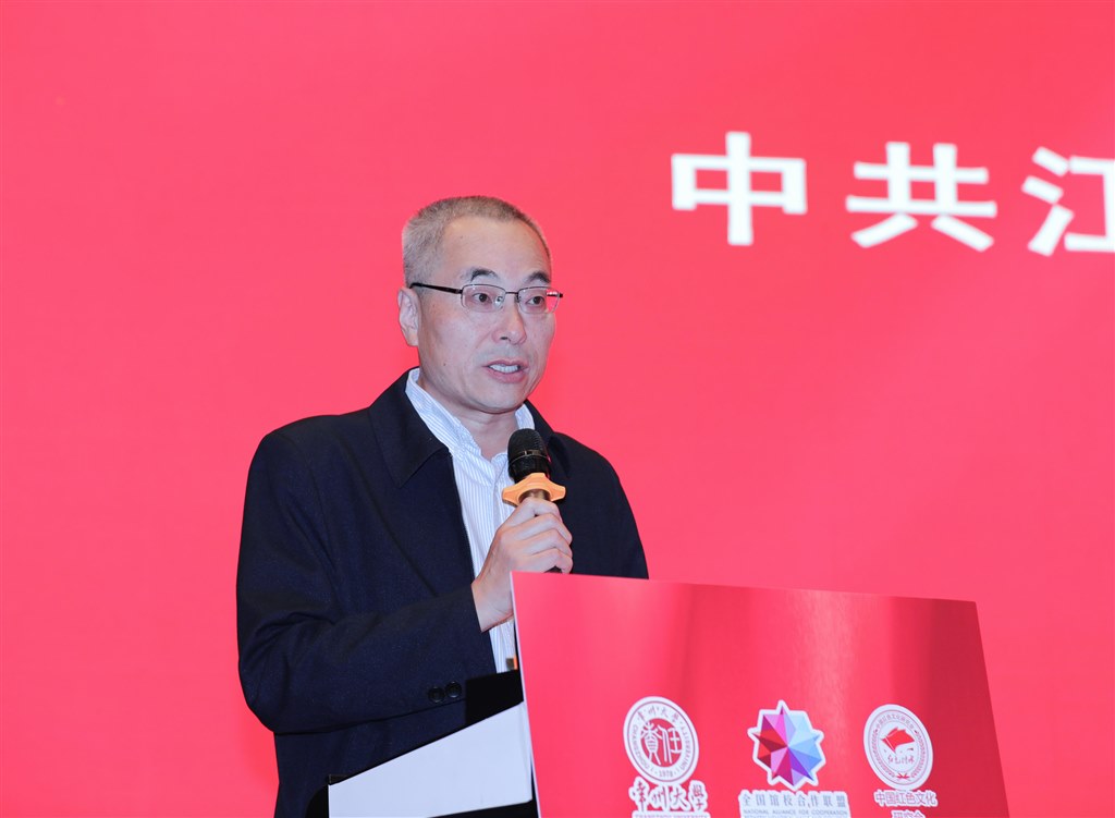新华日报社新华传媒智库综合外联工作室主任章海粟宣读新华日报社新华传媒智库贺信
