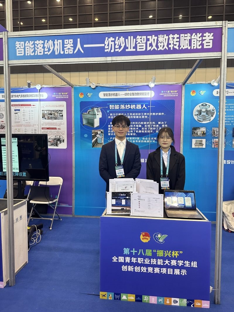 此外,智能控制学院沈晨普、涂艳群、陈曦老师指导,倪文宣、金晨光等同学设计的《智能落纱机器人—纺纱业智改数转赋能者》获高职组创意设计类全国银奖,智能控制学院李剑锋、李晓亮老师指导,刘康、薛志康等同学设计的《“破件重原”包覆型陶瓷增强粉体熔覆技术领航者》获高职组创意设计类全国铜奖。