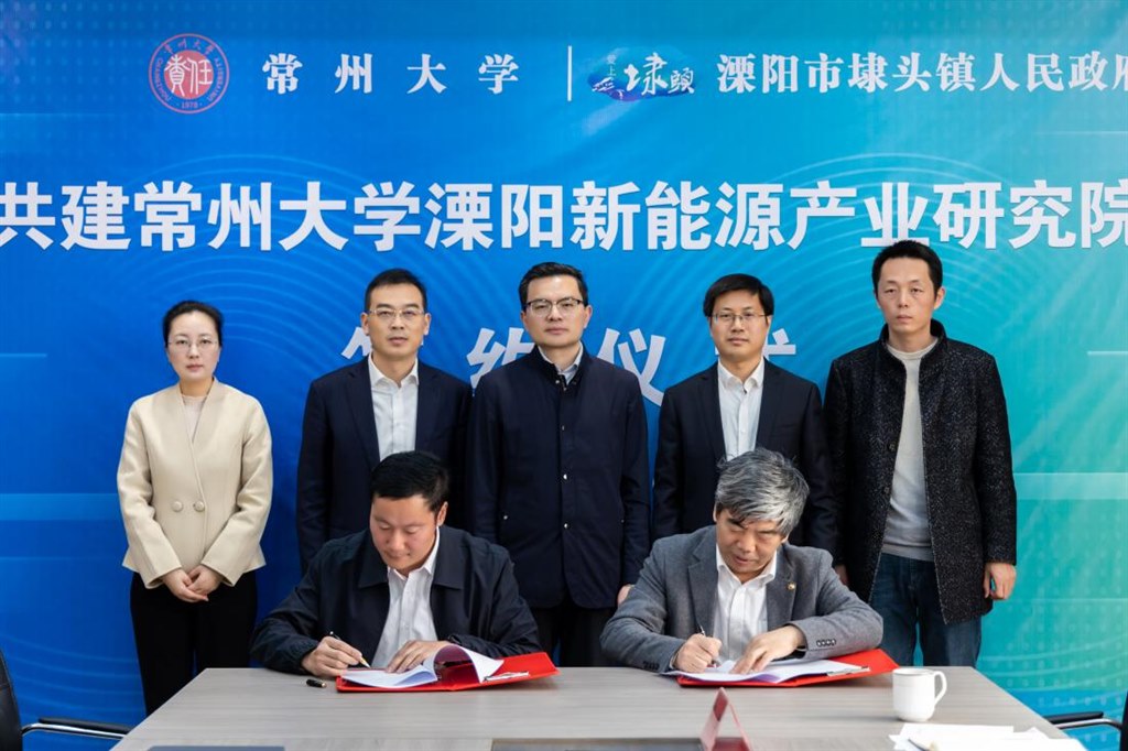 随后,常州大学产学研处代表学校与溧阳市埭头镇人民政府签署常州大学溧阳新能源产业研究院合作协议。