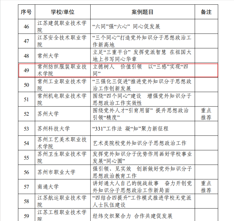 常州纺织服装职业技术学院将以此次表彰为契机,不断探索加强党外知识分子政治思想引领新路径,为高标准推进“双高校”建设,凝心聚力、担当作为;奋力谱写高质量发展新篇章,凝聚人心、汇聚力量。