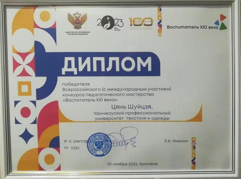 2023年11月30日,俄罗斯第六届“二十一世纪教育家” 国际教学大师班竞赛完美落幕。常州纺织服装职业技术学院的人文学院幼服专业学生钱水佳、严厉行、王潇三人组成的团队凭借《皮影戏—小马过河》参赛视频,在幼服专业教师邹莹、翁治清老师的悉心指导下,取得了第一名的优异成绩。