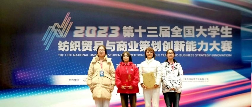 本次大赛由中国纺织服装教育学会主办,东华大学与上海远恒专修学院承办,共有本科、专科56支代表队、168名选手入围决赛。检测学院李浩、吕欣桐、朱逸滢团队获得商业策划创新奖(高职组)一等奖,朱伊蕙同学获得个人赛(高职组)三等奖。
