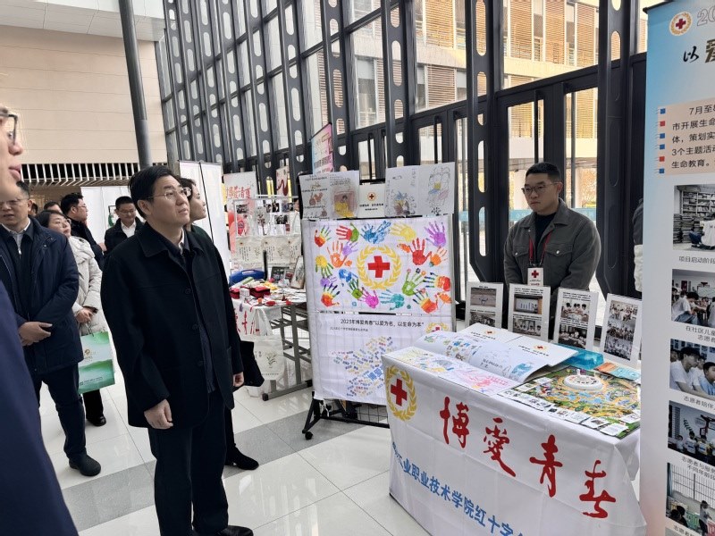 12月7日,由江苏省红十字会、省文明办、省教育厅、省卫健委、团省委、新华报业传媒集团、省广电总台联合开展的2023年全省高校红十字会“博爱青春”暑期志愿服务项目总结展示活动在河海大学举行,常州工业职业技术学院信息工程学院“以爱为名,以生命为本”项目荣获金奖。省红十字会党组书记、常务副会长齐敦品等领导详细了解了我校项目情况并给予充分肯定。