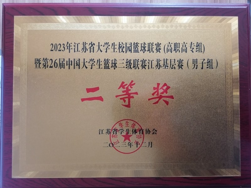 2023年12月19日至26日,常州纺织服装职业技术学院学生男子篮球队参加2023年江苏省大学生校园篮球联赛(高职高专组)暨第26届中国大学生篮球三级联赛江苏基层赛,首次获得此项比赛的二等奖(第四名)。