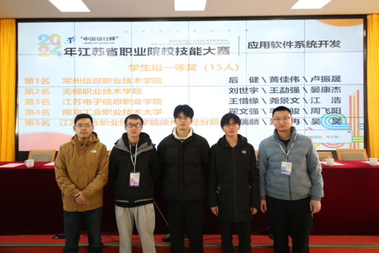 1月13日-14日,由江苏省教育厅主办、常州信息职业技术学院承办的2024年江苏省职业院校技能大赛高职电子与信息类应用软件系统开发赛成功举行。经激烈角逐,由学校软件与大数据学院崔浩、管文强老师指导,软件精英2212班后健、黄佳伟、卢振晟同学组成的参赛团队斩获一等奖第一名,为2024年学校竞逐各类技能大赛取得了“开门红”。
