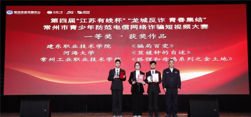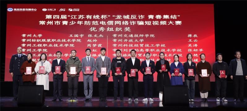 1月12日下午,由常州市市委宣传部、市委政法委、市教育局、市公安局、市人社局、团市委联合举办的第四届“江苏有线杯”“龙城反诈 青春集结”常州市青少年防范电信网络诈骗短视频大赛在常州现代传媒中心金色大厅圆满落幕。