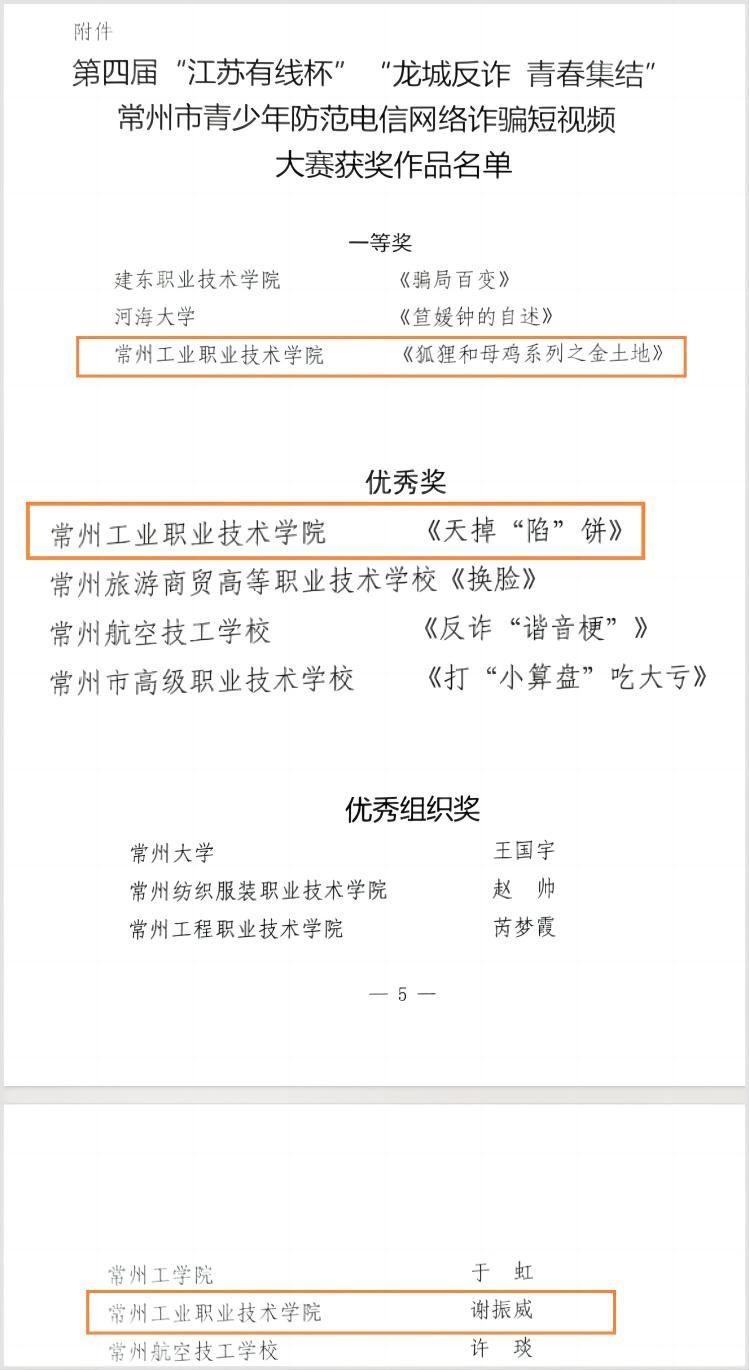 经过主办单位联合评审,常州工业职业技术学院选送的两部短视频作品从全市众多参赛作品中脱颖而出,分别获得一等奖和优秀奖。我校获得优秀组织奖。