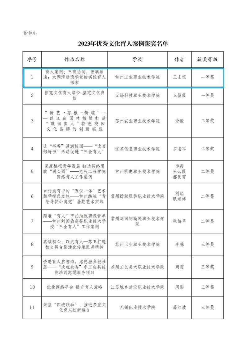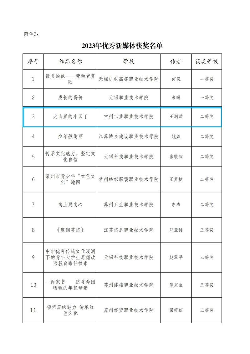 学校将以此次获奖为契机,进一步深化党建引领,围绕立德树人根本任务,充分发挥获奖作品的示范作用,扩大学校网络文化影响力,增强新时代学校思想政治工作的吸引力和实效性,强化校园文化以文化人、以文育人功能,践行社会主义核心价值观,努力把学校建设成为锻造理想信念的熔炉、弘扬主流价值的高地、涵育中华文化的家园、滋养文明风尚的沃土。(来源:常州工业职业技术学院)
