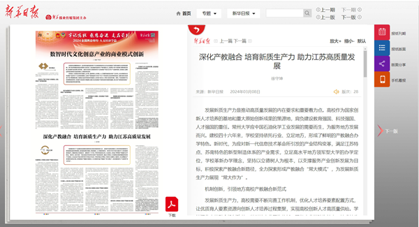 3月8日,正值全国两会召开之际,《新华日报》“牢记嘱托 感恩奋进 走在前列 2024全国两会特刊”专题发表常州大学党委书记徐守坤教授的署名文章《深化产教融合 培育新质生产力 助力江苏高质量发展》。文章从“机制创新,引领地方高校产教融合新范式”“全员融入,谋定地方高校产教融合新方案”“科技自强,构建地方高校产教融合新路径”“勇担责任,释放地方高校产教融合新动能”等方面介绍了学校产教融合工作的创新理念和实践。全文如下: