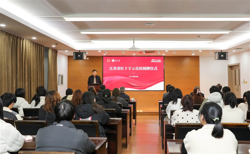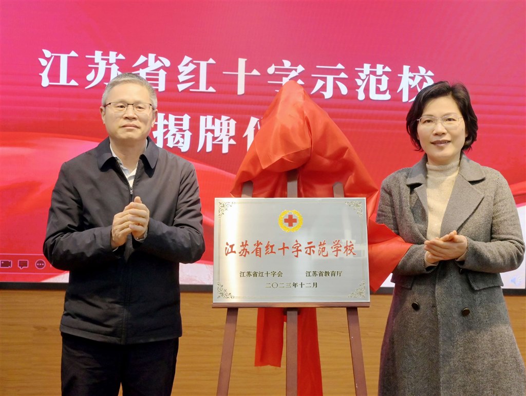 戴亚东和黄海燕共同为常大“江苏省红十字示范校”揭牌