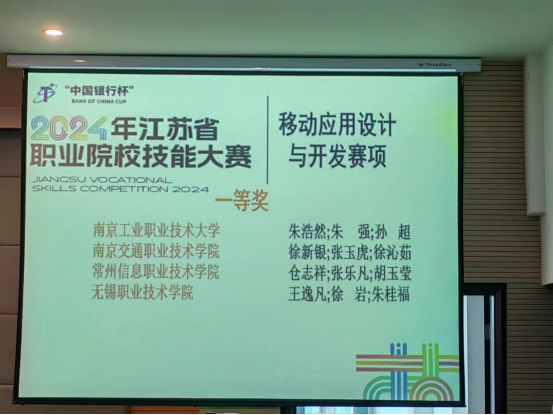 3月9日,2024年江苏省职业院校技能大赛高职组电子与信息类移动应用设计与开发赛项在南京工业职业技术大学开赛,来自全省40所职业院校的40支代表队参加比赛。经激烈角逐,常州信息职业技术学院由罗大晖、贺峰老师指导,张乐凡、仓志祥、胡玉莹同学组成的参赛团队获移动应用设计与开发项目团体一等奖。