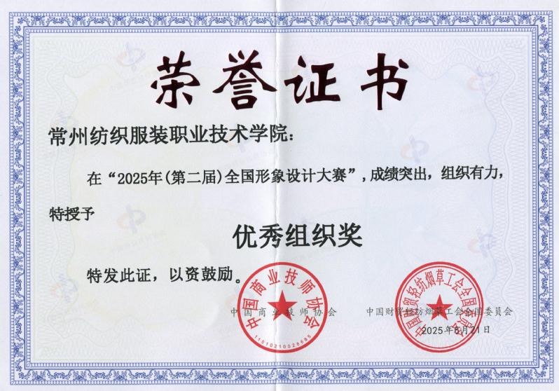 常州纺织服装职业技术学院选派的6名选手及6名模特在指导教师周生力、许东春及行业专家梁义的共同指导下,凭借精湛技艺与创新设计斩获多项荣誉。其中,李泓欣荣获二等奖,郑嘉妮、陈芃宇、于彤、张钰晗、李苏琪等获三等奖;模特殷铭、马彦雯荣获“形象气质奖”,张金芮、孙晓晔、董倩荣获“风采展示奖”;指导教师周生力、许东春荣获“优秀指导教练”,学校获评“优秀组织奖”。