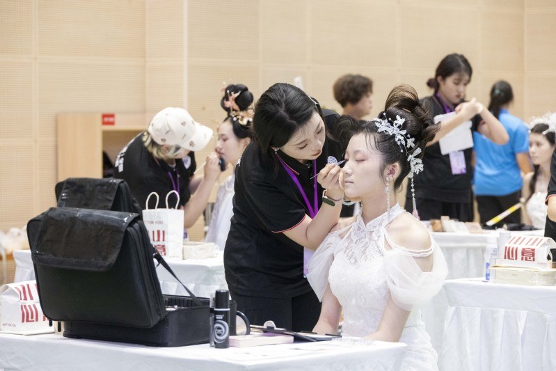 本届大赛要求选手以扬州千年文化为底蕴,结合现代美学理念完成人物整体造型设计。赛事分为理论考核与技能比拼两个阶段,选手需在限定时间内完成从妆容、发型到整体造型的全流程设计。自4月初接到参赛通知之日起,指导老师迅速根据文件精神组建参赛团队,仔细研究大赛技术文件,并制订参赛方案,参赛团队夜以继日、精益求精,始终以饱满的精神状态面对备赛过程中的各种挑战。学校参赛团队紧扣主题,展现“古今对话”的独特意境,彰显了传统美学与现代时尚的完美融合,赢得评委高度赞誉。参赛学生李泓欣表示:“这次比赛不仅考验技术,更让我们学会用造型语言讲述文化故事,是一次全方位的成长。”