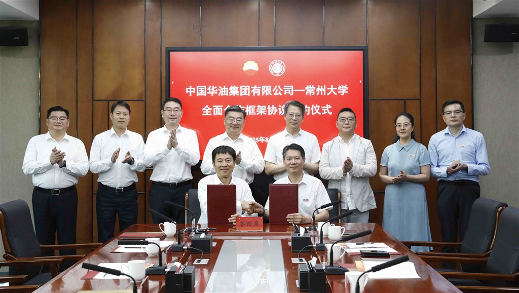8月29日上午,中国华油集团有限公司—常州大学全面合作框架协议签约仪式在科教城校区举行。中国华油集团有限公司党委书记、执行董事赵厚川,党委委员、总会计师郭延峰,总经理助理、党委办公室主任张挺,以及党委组织部、党委宣传部、发展计划部、业务运营发展中心、阳光酒店集团、阳光国际公司、华东分公司相关负责人和代表一行出席仪式。常州大学党委书记徐守坤,党委副书记、校长陈海群,党委常委、副校长杨琳,副校长晏成林,党委常委、组织部部长秦义,党委常委、宣传部部长薛冰,《中国国资报道》专家咨询委员会秘书长、常州大学中国企业出海研究院执行院长苏赢及党委办公室、校长办公室、发展规划处、人事处、产学研合作处、人文社科处、能源化工行业创新处、继续教育学院、跨文化研究院、中国企业出海研究院负责人和代表参加签约仪式。晏成林主持签约仪式。