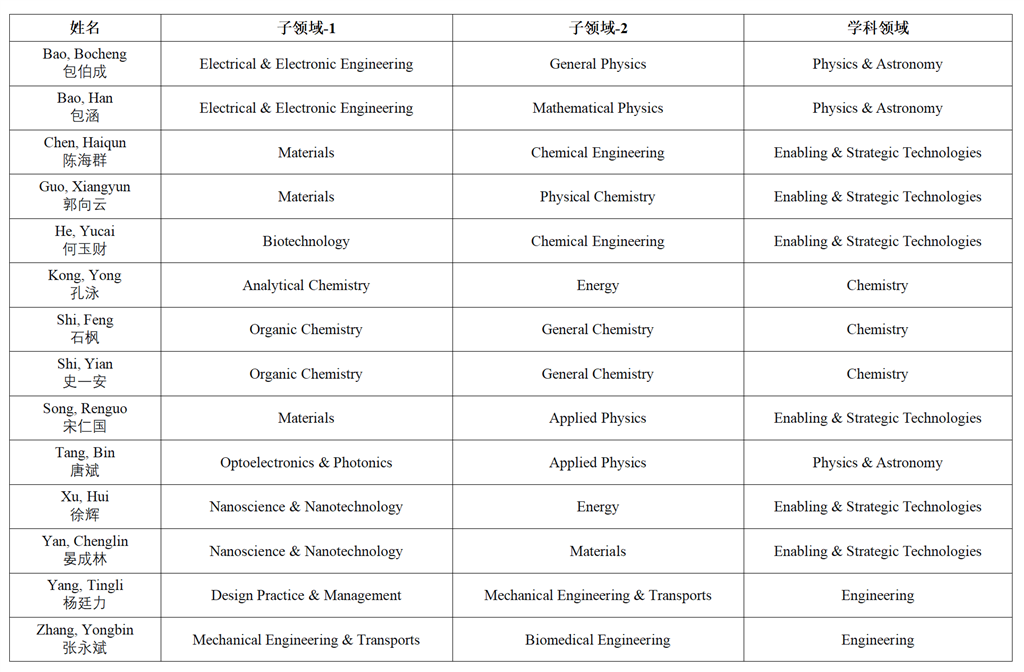 常州大学入选终身科学影响力排行榜学者(按姓氏首字母排序)