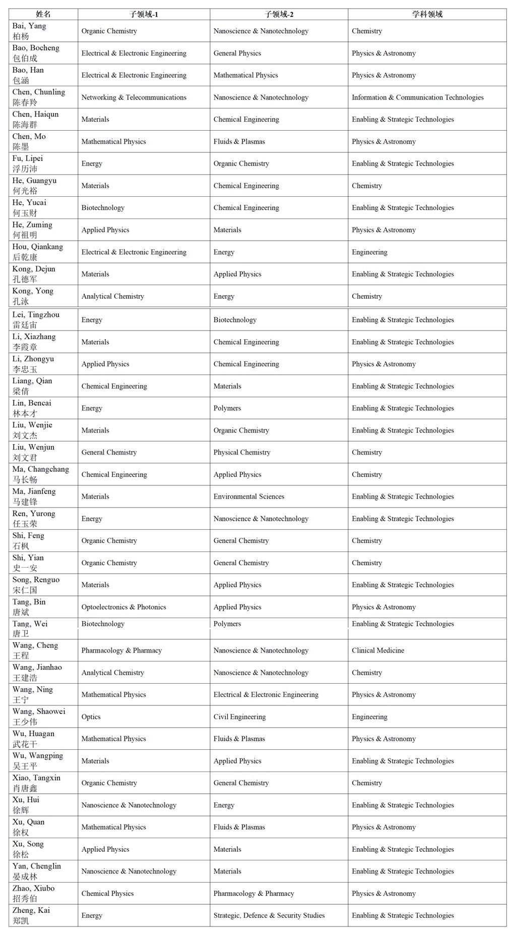 常州大学入选年度科学影响力排行榜学者(按姓氏首字母排序)