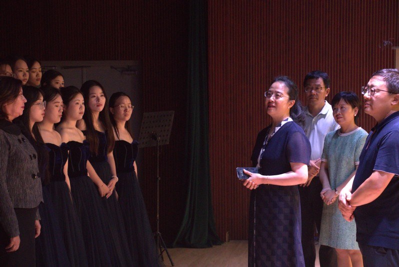 为迎接此次赛事,音乐与影视学院特别组建了紫金合唱季比赛攻坚团队。在团队引领下,龙吟合唱团自暑假起展开了每天6小时的密集特训。47名合唱团成员不畏酷暑、直面高温,伴随着阵阵蝉鸣,精益求精,力求将每一个细节雕琢至完美。备赛期间,校党委常委、副校长杨琳及音乐与影视学院负责人多次亲临排练现场,慰问并指导,为师生们加油鼓劲,极大地提升了团队的士气。