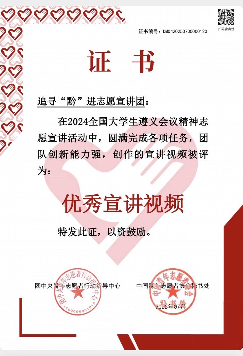 2024年11月至2025年5月,团队在学院党委、团委的坚强领导和大力支持下,始终以高度的政治责任感和历史使命感,深入学习宣传贯彻习近平新时代中国特色社会主义思想和党的二十届三中全会精神,紧紧围绕“传承红色基因,讲好遵义故事”的重要要求,将弘扬遵义会议精神与落实“强国复兴有我”群众性主题宣传教育活动紧密结合,开展了内容丰富、形式新颖、成效显著的系列志愿宣讲活动。
