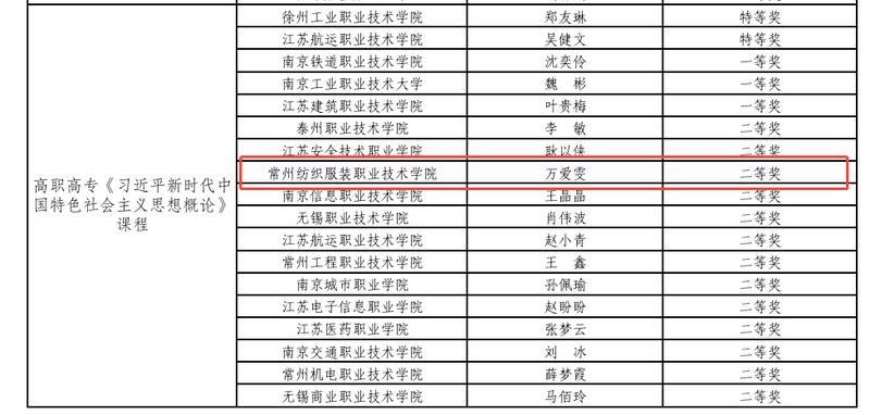 在第三届全省高校思政课教学展示活动中,常州纺织服装职业技术学院马克思主义学院三位教师表现卓越,载誉而归。全省93所高职院校共372人参与此次活动,竞争激烈,最终仅有71人获奖。学校万爱雯老师荣获“习近平新时代中国特色社会主义思想概论”课程组二等奖,陈碧宇、严晨晖老师同获“思想道德与法治”课程组二等奖。
