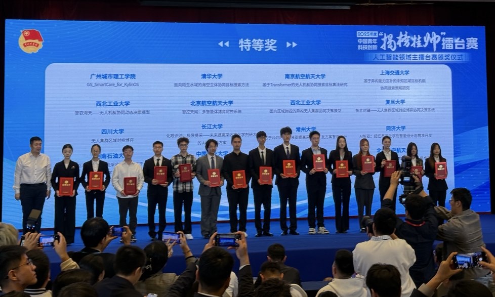 《基于AI4S的微乳液驱提高采收率开发方案智能设计》项目获得“揭榜挂帅”擂台赛全国特等奖(右3)