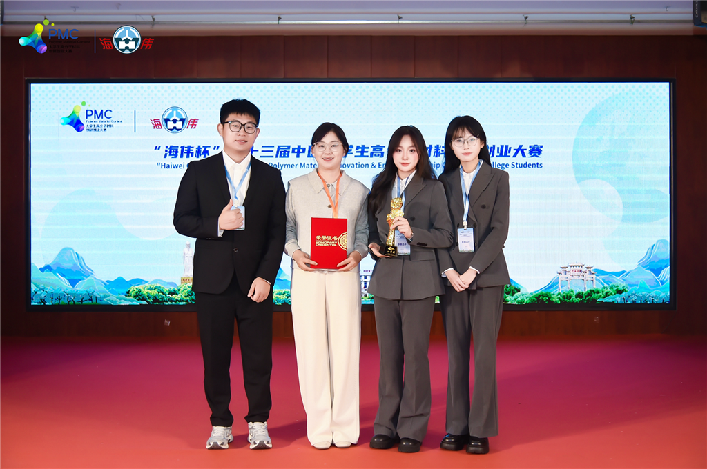 近日,由中国石油和化学工业联合会、中国化工教育协会及橡胶谷集团有限公司联合主办,河北海伟电子新材料科技股份有限公司与橡胶谷集团有限公司运营中心联合承办的 “海伟杯” 第十三届中国大学生高分子材料创新创业大赛全国决赛在河北省衡水市景州县落下帷幕。由常州大学石油化工学院林理伟、徐松老师指导,石油化工学院和环境科学与工程学院学生唐晨曦、华诗雨、周赛宇、刘兆祖、吴思宇联合申报项目《稀愈先锋——基于超分子包合技术的改性稀土复合材料伤口敷料研发》入围总决赛并在激烈角逐中荣获全国一等奖!
