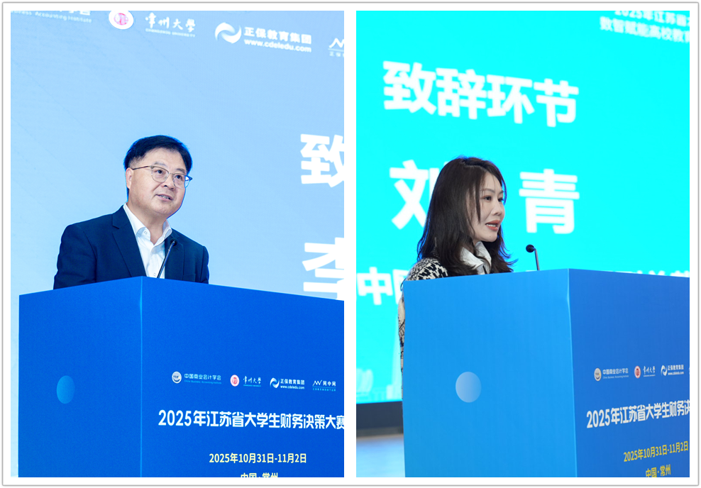 11月1日,江苏省大学生财务决策大赛在常州大学西太湖校区举行。大赛由中国商业会计学会主办,常州大学商学院承办,厦门网中网软件有限公司、厦门网中网教育科技有限公司、北京东大正保科技有限公司、正保会计网校提供技术支持。来自全省25所高校的44支队伍近200名师生齐聚一堂,上演了一场智慧与实践交融的财务决策竞技,充分展现了江苏省高校财经学子的专业素养与创新能力。党委常委、副校长李忠玉出席开幕式并致辞,商学院党委书记龙涌澜主持开幕式。