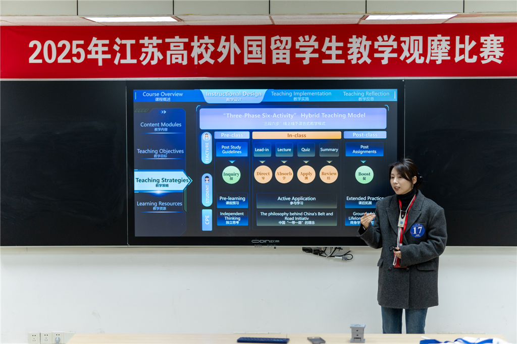 该项赛事是“留学江苏”品牌建设的重要载体,本届比赛创新赛道设置并优化流程、强化成果运用,展示各校参赛教师的风采和留学生教育内涵发展的最新成果。赛事自6月启动,历经校级选拔、初赛、复赛三阶段。学校高度重视备赛工作,国际教育学院联合相关教学单位,通过校赛遴选、专家辅导、模拟演练等多轮打磨,持续优化参赛课程设计与展示效果,为教师参赛保驾护航。