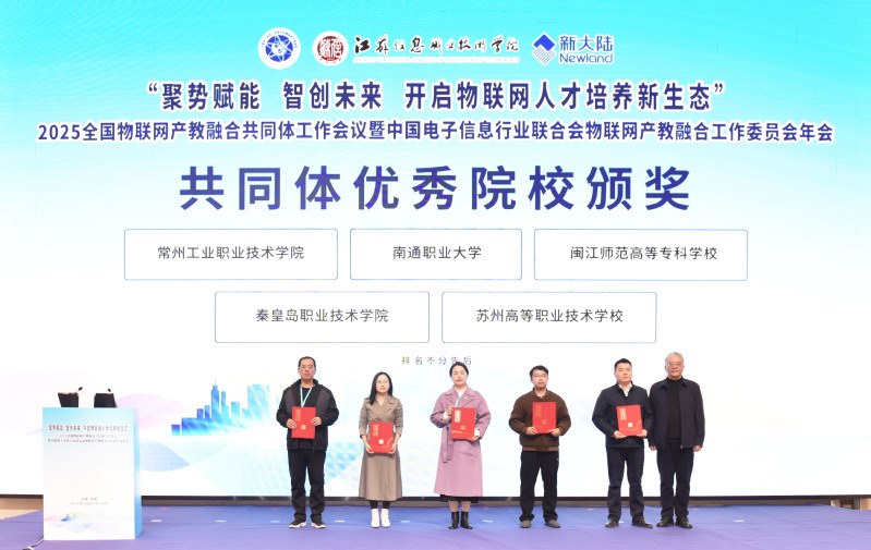 会议期间,主办方对在物联网产教融合领域做出突出贡献的单位和个人进行了表彰。凭借在专业建设、校企合作、人才培养质量等方面的卓越表现,学校荣获“全国物联网产教融合共同体优秀院校”称号。同时,学校信息工程学院申晓平老师因在推动课程改革、指导学生竞赛、促进技术成果转化等方面的杰出贡献,被授予“全国物联网产教融合共同体优秀个人”荣誉称号。两项荣誉的获得,是对我校长期以来坚持服务产业发展、深耕产教融合工作的充分肯定。