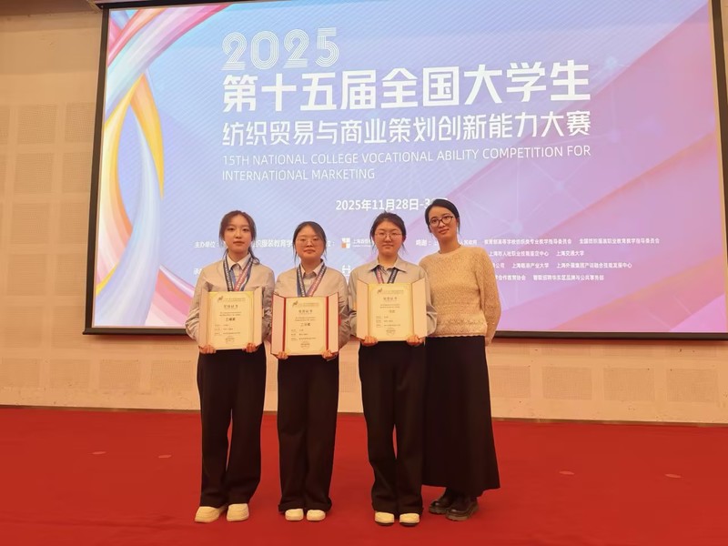 常州纺织服装职业技术学院智能纺织与材料学院纺织品检验与贸易专业李真颜、王升慧、张诗颖三位同学(指导团队:冒海文、杨静芳、邵东锋等)表现卓越。赛场上,三位选手沉着自信,在综合理论与实务操作、商业策划创新能力展示两大模块的角逐中,交出了亮眼答卷,获得评委一致好评。最终,斩获一等奖1项、二等奖1项、三等奖1项,尽显纺院学子扎实专业功底与勇于创新风貌。成绩取得的背后,是学院的高度重视与全方位支持,从场地安排、设备保障到后勤服务,为参赛团队筑牢后盾;是指导团队老师的全力以赴,围绕贸易实务、商业策划两个模块,反复练习,精益求精。