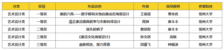 近日,第20届中国好创意暨全国数字艺术设计大赛廉洁文化创意专项赛获奖名单正式揭晓,常州大学的美术与设计学院师生以扎实的创意实力与深刻的廉洁文化表达,一举斩获一等奖2项、二等奖1项、三等奖2项,彰显了学院在数字艺术设计领域的创新能力和廉洁文化教育的丰硕成果。