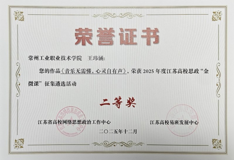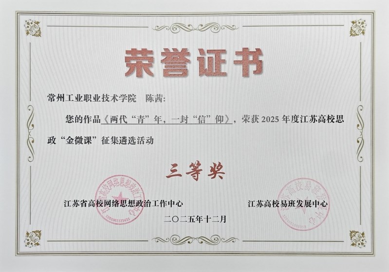 学校将以此次获奖为契机,进一步深化网络思想政治工作中心建设,聚焦青年学生思想特点与成长需求,加大网络思政精品内容创作力度,推动网络思政教育与专业教育、传统文化教育、地方红色资源深度融合,不断完善“大思政”育人格局,为培养担当民族复兴大任的时代新人提供更强有力的思想保障与精神支撑。(来源:常州工业职业技术学院)