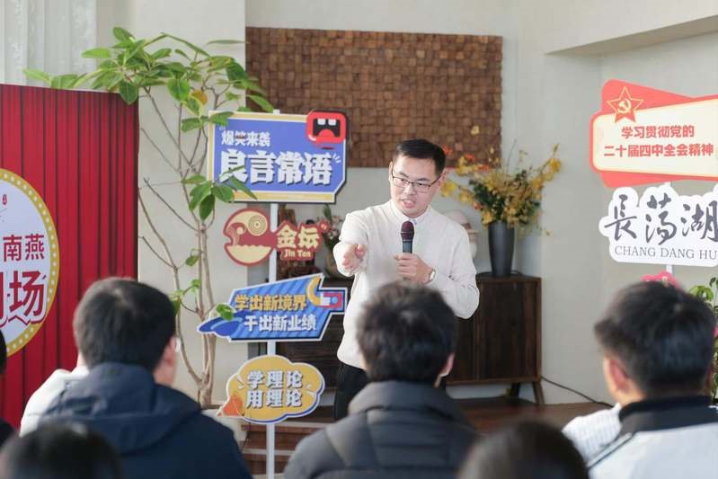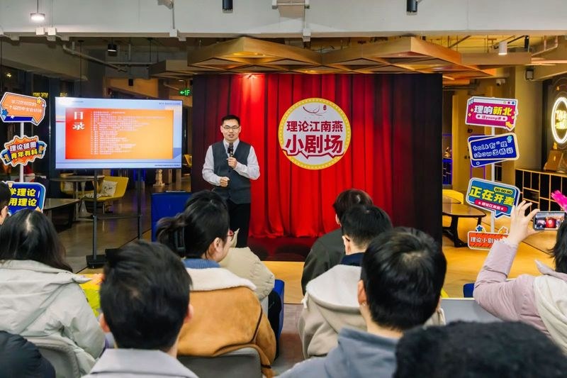 王风圳自2025年10月入选“江南燕”新时代青年理论人才宣讲创作成长营以来,利用业余时间,在三个月的系列宣讲活动中,先后走进焦溪古镇、遥观镇剑苑社区、邹区镇杏塘村、青果巷等地,进行党的二十届四中全会精神主题宣讲、《习近平谈治国理政》第五卷主题宣讲、“大思政课,要善用之”脱口秀系列宣讲,并根据不同场合主动变换内容,多方面、多层次介绍我校“新能源产教联合体”“中国式现代化的常州实践”和马克思主义学院在课程建设层面的新做法,相关宣讲活动先后被学习强国、常州宣传、常州发布等媒体平台关注报道,进一步增强了我校的影响力。与此同时,王风圳积极引进宣讲营资源进校园、进课堂,赋能校团委开展青马工程第一课、马院“学习邓建军”演讲比赛等活动,实现“走出去”与“引进来”相互贯通的“大思政”格局。