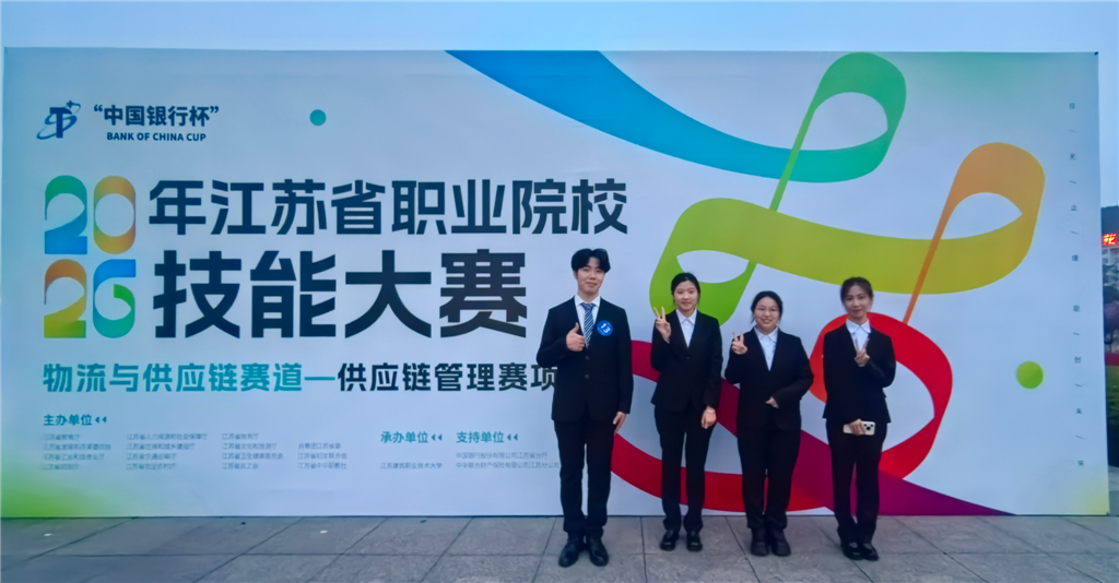 3月31日至4月1日,2026年度江苏省职业院校技能大赛(高职组)供应链管理赛项在江苏建筑职业技术大学举行。常州机电职业技术学院经济管理学院学生马鹏涛、刘皖欣、刘从蔚、张凤宇组成的代表队(指导教师:李琰芬、陈勇),凭借出色的团队协作和扎实的专业技能,在激烈的竞争中脱颖而出,荣获一等奖。