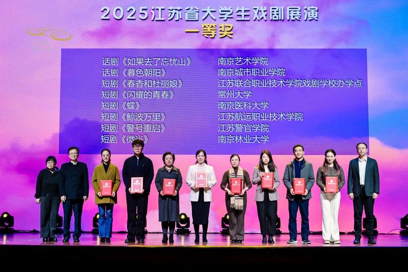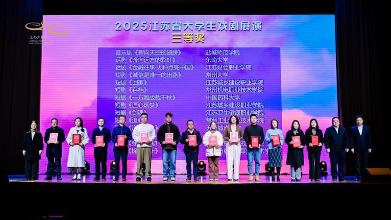 据悉,本年度获得特等奖、一等奖及部分二等奖的作品将纳入2026年度江苏省“高雅艺术进校园”节目库。明年春天,还将举办大学生戏剧展演活动优秀剧目展演周,开展专场展演、主题沙龙、高校戏剧社团巡礼等活动。(来源:常州大学)