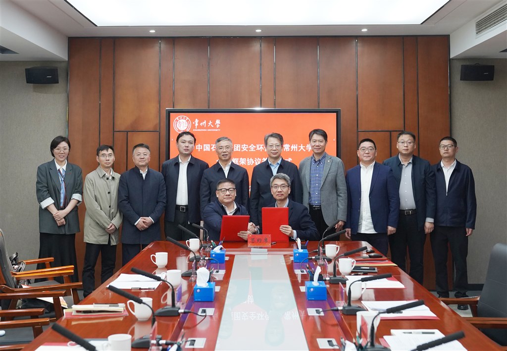 4月2日上午,中国石油集团安全环保技术研究院—常州大学合作框架协议签约仪式在科教城校区举行。中国石油集团安全环保技术研究院(以下简称“中石油安环院”)党委书记朱圣珍,首席专家景英华,科技管理部经理马敬昆,炼化储运与新材料安全技术研究所所长罗方伟,污染防治与生态保护技术研究所所长李巨峰,海外HSE技术中心主任王娟出席仪式。常州大学党委书记徐守坤,党委副书记、校长陈海群,党委常委、副校长潘勇,《中国国资报道》专家咨询委员会秘书长、常州大学中国企业出海研究院(以下简称“常大中企院”)执行院长苏赢,以及相关职能部门、学院和常大中企院的领导和代表参加签约仪式。陈海群主持签约仪式。