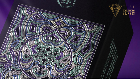 获奖作品《“端彩流韵”九仟酒包装设计》以水族端节为文化主题,围绕“端彩”与“流韵”构建马尾绣与九阡酒的双向叙事系统。设计提取马尾绣葫芦造型元素,创制“葫运锦绣”组合纹样,并嵌入双纹对称形态的“合和如意纹”,寓意天地祥和、福禄双全。以墨色为底,葫芦酒器形成“平面图腾—立体器物”的形态对仗与叙事闭环。酒瓶施以青紫色窑变釉,捕捉端节暮色中青紫交融的自然流变,每一件器物的釉色皆为唯一。外包装恪守水族崇尚淡雅的色彩伦理,以素净底色承载华彩纹饰,体现其“朴素、大方、实用”的审美核心,彰显九阡酒糯米纯酿、坛藏陈化的自然醇厚。