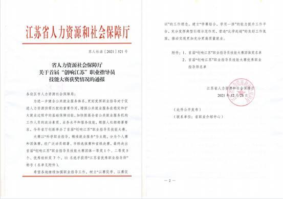 大赛由江苏省人力资源与社会保障厅主办,以“科学职业指导,精准就业服务”为主题,分为个人赛和团体赛,吸引了全省近千名职业指导员同台竞技,经广泛动员部署、市级选拔赛和省级决赛,14支代表队中最终决出团体一等奖1个、二等奖5个、优秀组织奖7个,11名选手获得“江苏省优秀职业指导师”称号。