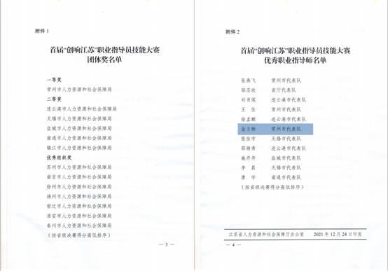 首届“创响江苏”职业指导员技能大赛获奖结果于日前揭晓。我校教师金立畅所在的常州市人力资源和社会保障局代表队荣获本届大赛唯一的团体一等奖。金立畅凭借全省个人排名第六的好成绩,获得“江苏省优秀职业指导师”称号。